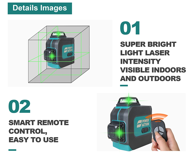 Super bright light laser intensity visible indoors and outdoors, Twelve green lines, Smar remote control, Easy to use